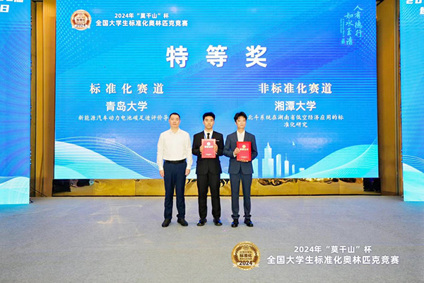 10月13日,在蔡高強教授的帶領下,湘潭大學法學學部研究生龔智暉、田心如、李可、周月、曹銀珠、黎瑩萍、明林子組成的團隊一舉奪得2024年“莫干山”杯全國大學生標準化奧林匹克競賽總決賽特等獎。